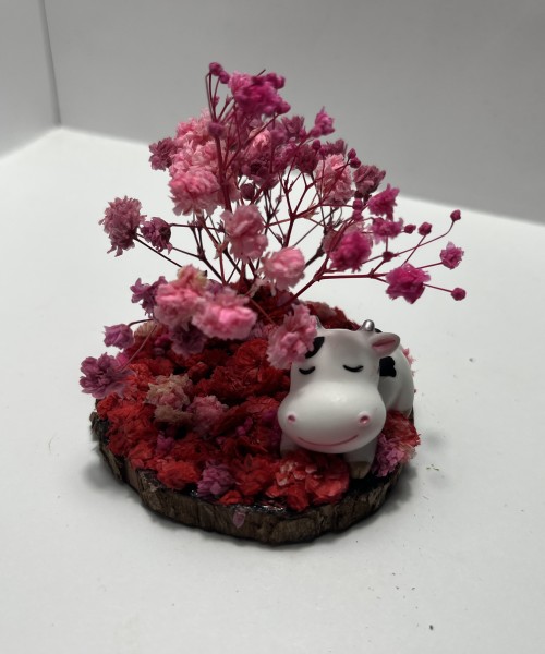 Sleeping Cow Under Pink Tree On A Bed of Pink & Red Flowers