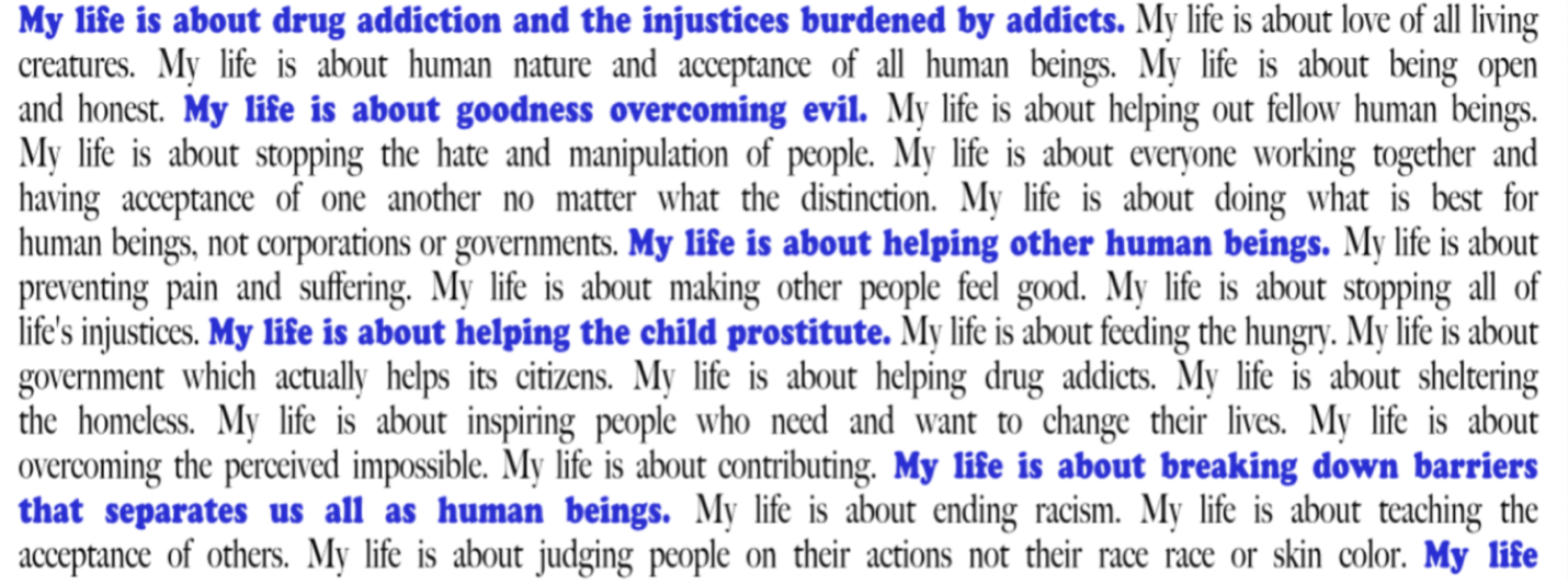 Since the beginning of my writing odyssey, I believed the sole purpose of God compelling me to share my story was so humanity could benefit from my experiences with God and the visions of the world God had provided me with. It was only during the final six months of putting my book together that I realized that God had an ulterior motive. In order to tell my story, God forced me to examine the details of my life so that I could discover my life has value. I’m a good person, striving to make this a better world for all every day. The text in the graphic at the top of this page is from a document I created back in 1992 when tasked with brainstorming who I was. I discovered the forgotten document in an old file folder and was pleasantly surprised to recognize the sentences I had written represented who I am, what I believed in, and what I wanted to accomplish with my life. I had captured the essence of my being. Recognizing the significance of this document, I turned it into a poster, and given my life experiences, I aptly titled it “I Am The Miracle.” The poster hangs on the wall next to my desk. A full copy of the poster text can be found in my new book.